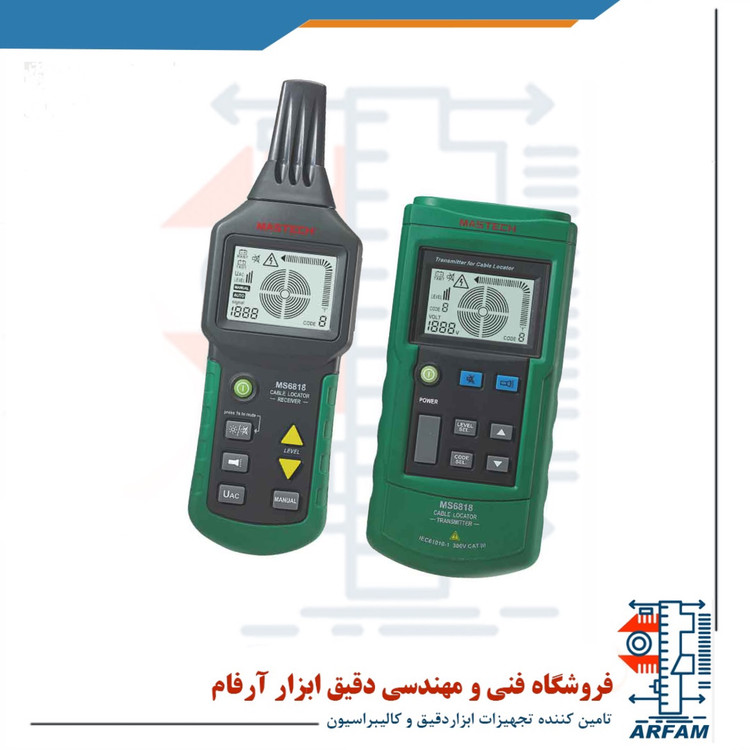ردیاب سیم و کابل برند مستک مدل MASTECH MS6818 متشکل از یک فرستنده سیگنال و یک گیرنده است که به طور گسترده در ساخت و نگهداری کابل های ارتباطی ، کابل های برق، لوله های فلزی و موارد دیگر استفاده می شود. مکان دقیق کابل های رسانای جریان و ولتاژ، مدارهای الکتریکی، مجاری، خطوط لوله آب و گرمایش، فیوز ها، سوکت ها، جعبه اتصالات، کلید ها را مشخص می کند و قادر به تشخیص محل اتصال کوتاه و قطع خطوط و کابل های مختلف در زیر زمین، دیوار ها و حتی بتن است. این دستگاه توان اندازه گیری سیگنال خروجی 125 کیلو هرتز، ولتاژ خارجی AC از 12 ولت تا 400 ولت، فیوز 0.5 آمپر و 1000 ولت، جریان مینیمم 31 میلی آمپر، جریان ماکزیمم 115 میلی آمپر در فرستنده و برنامه تک قطبی حدود 2~0 متر، برنامه دو قطبی حدود 0.5~0 متر، خط یک حلقه تا 2.5 متر، جریان مینیمم 32 میلی آمپر، جریان ماکزیمم 89 میلی آمپر در گیرنده را داراست.