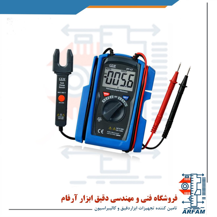 مولتی متر دیجیتال جیبی CEM DT-12 به علت ابعاد مناسب و قابلیت های فراوان یکی از محبوب ترین مدل های مولتی متر برند سم محسوب می شود که قابلیت سنجش جریان مستقیم و جریان متناوب این دستگاه را بین مهدسین عزیز محبوب نموده است.توانایی سنجش جریان مستقیم و جریان متناوب, سنجش ولتاژ مستقیم و ولتاز متناوب و همچنین اندازه گیری فرکانس و مقاومت در بازه مناسب از ویژگی های این محصول به حساب می آید. این مولتی متر دیجیتال جیبی دارای دو نوع پراپ بوده که کارایی ان را افزایش و سهولت کار را برای مناطق قابل سنجش متفاوت زیاد می کند.امروزه مولتی مترهای دیجیتال نسبت به نوع آنالوگ بیشتر مورد استفاده قرار می گبرند زیرا دارای طول عمر بیشتر، دقت بالاتر و ارزان تر از نوع آنالوگ می باشند و همچنین بسیاری از آنها قابلیت اتصال به کامپیوتر را نیز دارند و لذا می توان با متصل کردن آنها به کامپیوتر و انتقال کمیت های اندازه گیری شده به کامپیوتر، از این کمیت ها در برنامه های نوشته شده استفاده کرد و به این طریق دستگاه هایی را کنترل کرد.