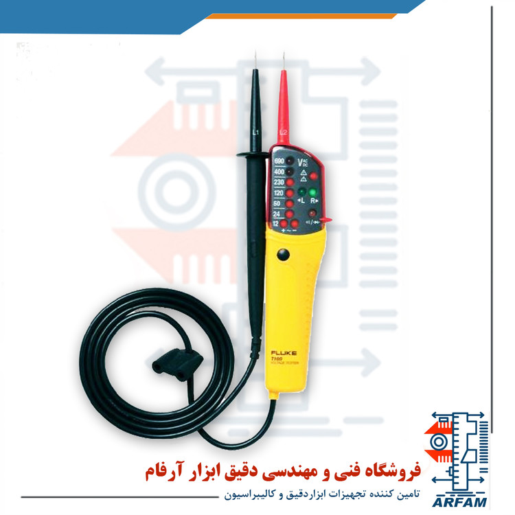 تستر الکتریکال فلوک مدل FLUKE T100 قابلیت اندازه گیری ولتاژ AC/DC و تست اهمی/ تست دیودی را دارد. در واقع تست ولتاژ اصلی ترین فانکشن تستر ولتاژ می باشد. به تعبیر دیگر می توان گفت تستر ولتاژ یکی از انواع فازمتر می باشد فقط با این تفاوت که قابلیت نمایش سطح ولتاژ را با یک بار گراف LED دارد. این تستر دارای یک LED نورانی برای روشن نمودن سطح کار را دارد.
