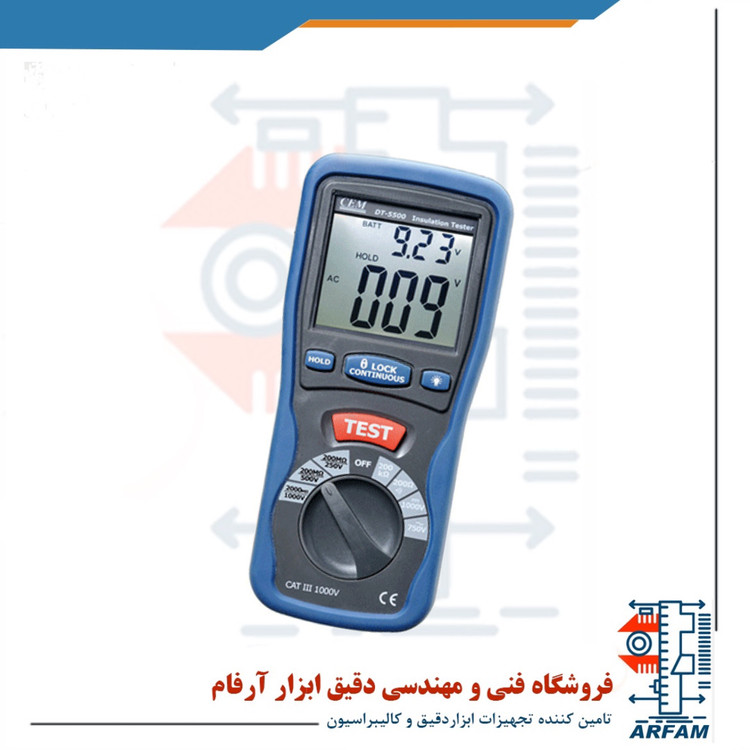این دستگاه تستر عایق DT-5500 ساخت CEM مطابق با استانداردهای IEC10101, CATIII 1000Vساخته شده است . دستگاه دارای بدنه بسیار سبک است و همچنین قابل حمل می باشد.