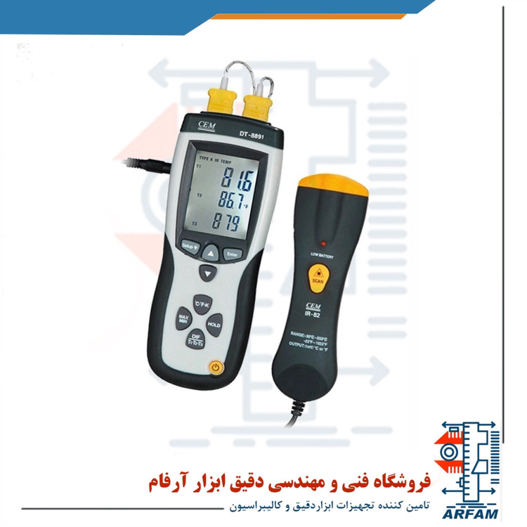 ترمومتر دماسنج تماسی 4 کاناله همراه با دماسنج لیزری مدل CEM DT-8891E