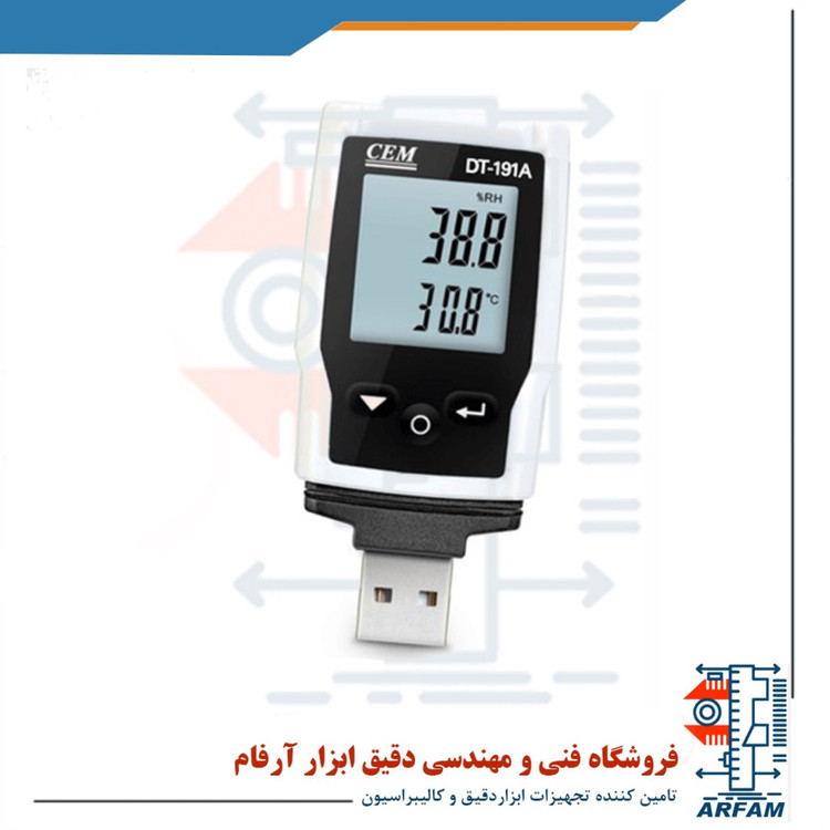 دیتالاگر دما و رطوبت دیجیتال USB سی ای ام CEM DT-191A با اندازه کوچک خود بسیار مناسب برای حمل و نقل مواد غذایی و دارویی بوده و میتواند در حافظه 20 هزار تایی خود برای هر کانال مقدار دما را از -40 تا 70 با دقت 1 درجه و رطوبت از 0 تا 100 درصد را اندازه گیری کند