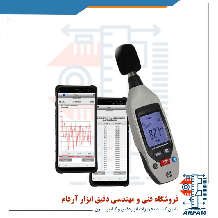 صوت سنج دیجیتال CEM مدل DT-95 یک صدا صنج با پراب سرخود جهت اندازه گیری و رهگیری سریع و دقیق فرکانس های صوتی ماشینی و فرکانس های صوتی قبال شنیدن توسط انسان می باشد. باید گفت که این صوت سنج مجهز به سیستم بلوتوث جهت انتقال راحت و آسان داده های اندازه گیری به تلفن هوشمند و کامپیوتر کاربر می باشد.